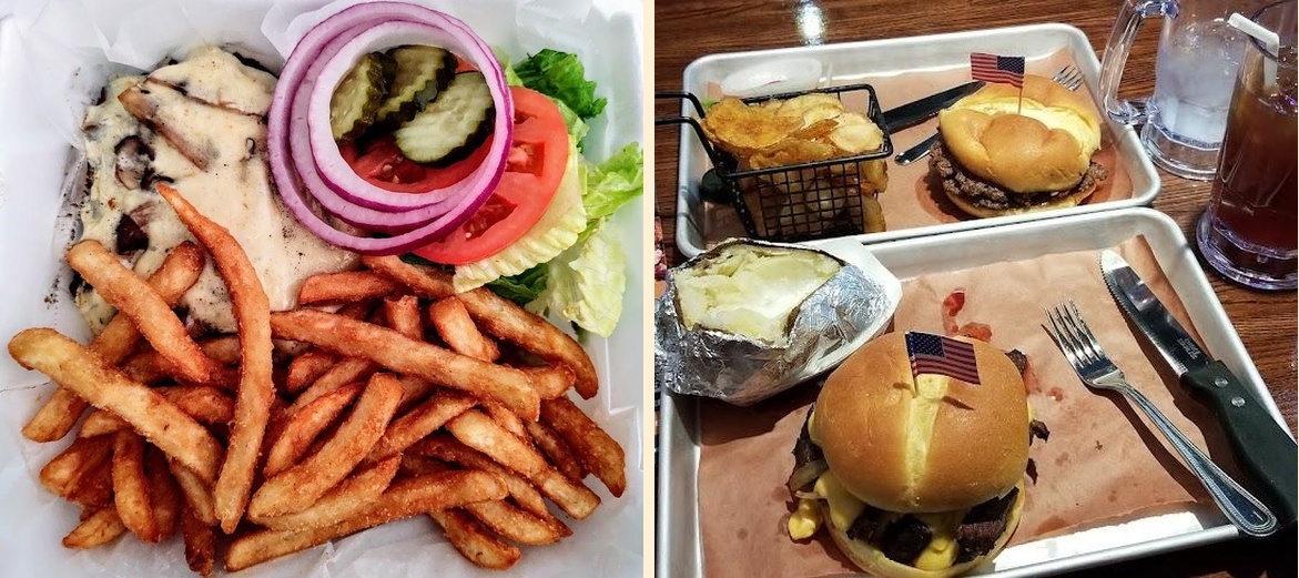 "Pretty cool place, good service and food. We sat outside because the weather was beautiful, they have a nice little area to sit with umbrellas. Wife ordered cheddar bbq burger and I ordered The Double. The Double is HUGE!!! Both burgers had thick bacon that tasted amazing! I had waffle fries and they were good as well."